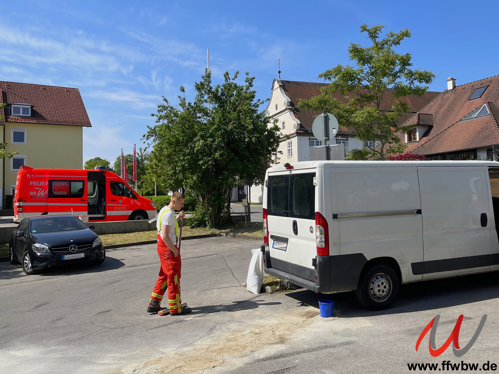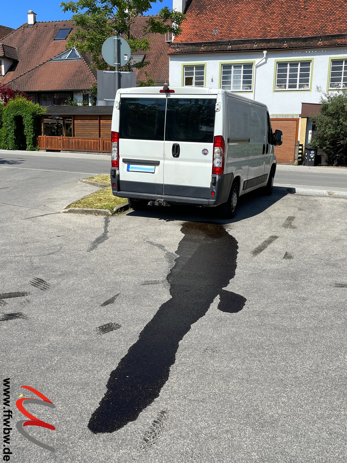 Aufnahme von ausgelaufenem Kraftstoff auf einem Parkplatz in der Schulstraße.