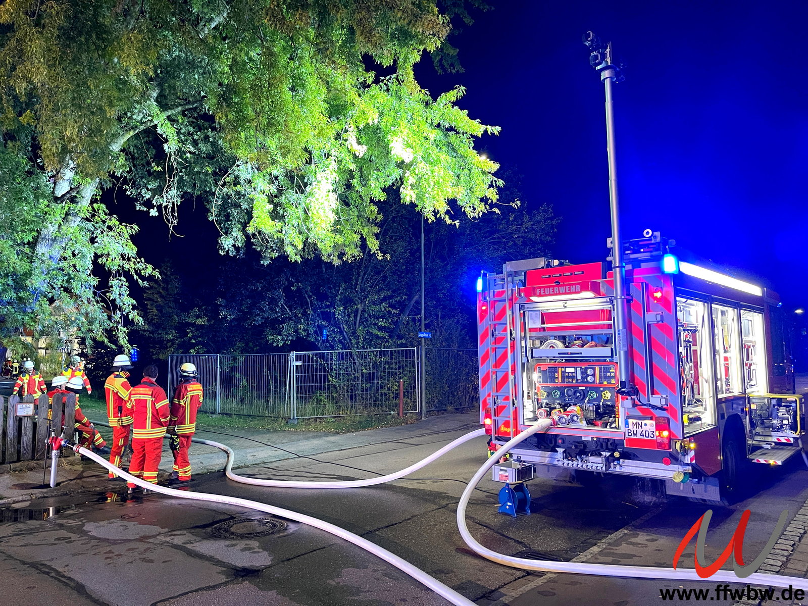 Nach Eintreffen der ersten Einsatzkräfte am Einsatzort stand ein komplettes Zimmer im Erdgeschoss des betroffenen Gebäudes in Vollbrand. Die Bewohner konnten sich rechtzeitig in Sicherheit bringen.