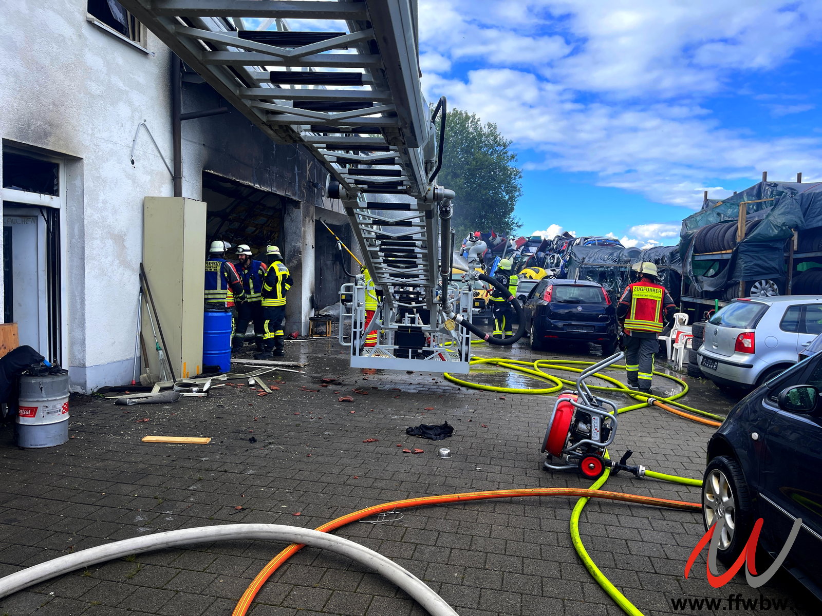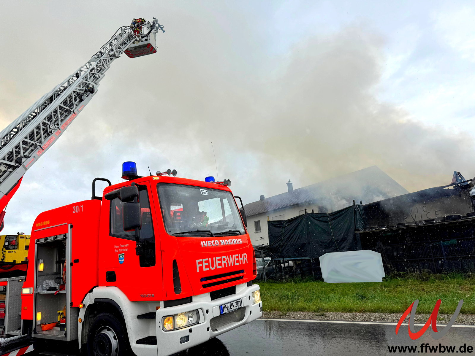 Am Samstagnachmittag um 14.48 Uhr wurde die Feuerwehr Bad Wörishofen gemeinsam mit den Feuerwehren Rammingen, Tussenhausen, Mattsies und Türkheim in den Tussenhauser Weg nach Unterrammingen zum Brand einer Autowerkstatt alarmiert.