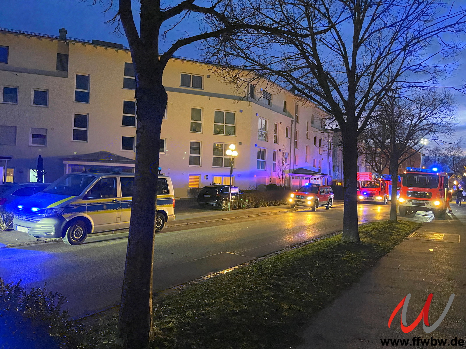 Ausgelöste Brandmeldeanlage in einer Seniorenresidenz in der Türkheimer Straße. Vor Ort wurde eine starke Rauchentwicklung in einem Zimmer im Erdgeschoss des Heimes festgestellt. Die Bewohnerin des Zimmers wurde von der Feuerwehr umgehend in einen sicheren Bereich begleitet und zur weiteren Behandlung dem Rettungsdienst und einem Notarzt übergeben. Ursache für die Rauchentwicklung waren stark angebrannte Speisen auf einer Herdplatte. Der Kleinbrand wurde durch einen Atemschutztrupp abgelöscht und das Zimmer mit einem elektrischen Drucklüfter ventiliert.