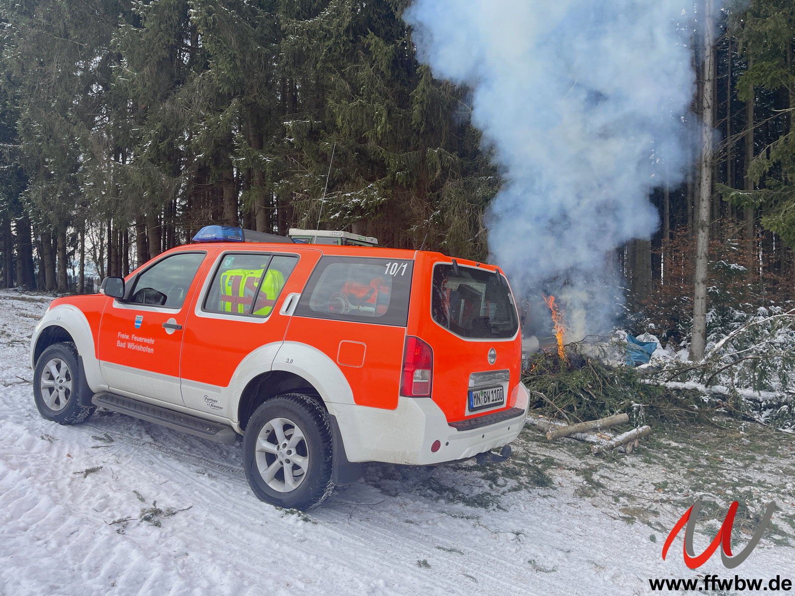 Gemeldete Rauchentwicklung im Bereich Tannenbichl. Die Erkundung ergab, dass es sich bei der Rauchentwicklung um ein angemeldetes Forstfeuer handelte.