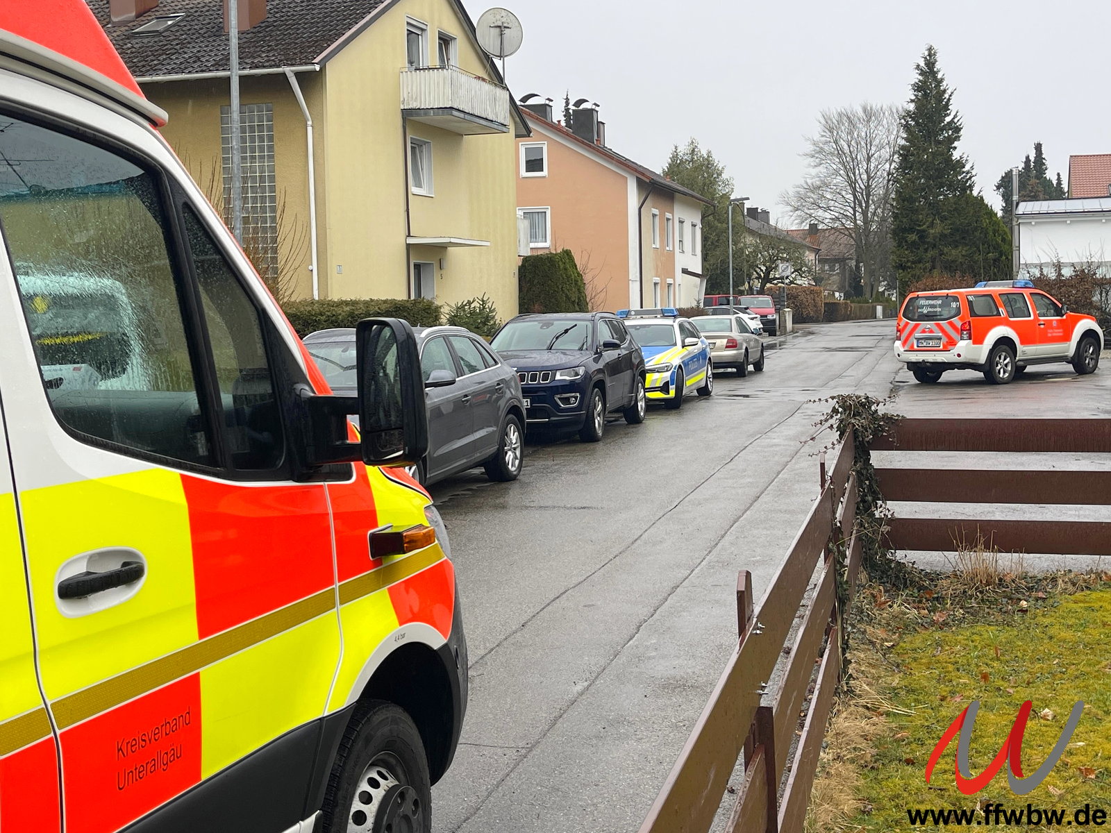 Medizinische Erstversorgung einer erkrankten Person durch Einsatzkräfte der Feuerwehr Bad Wörishofen bis zum Eintreffen von Rettungsdienst und Notarzt im Mozartweg.