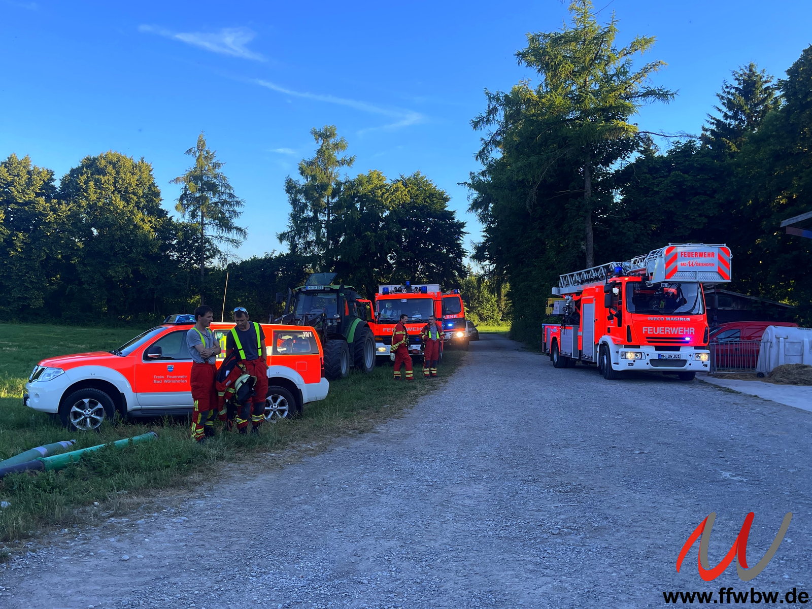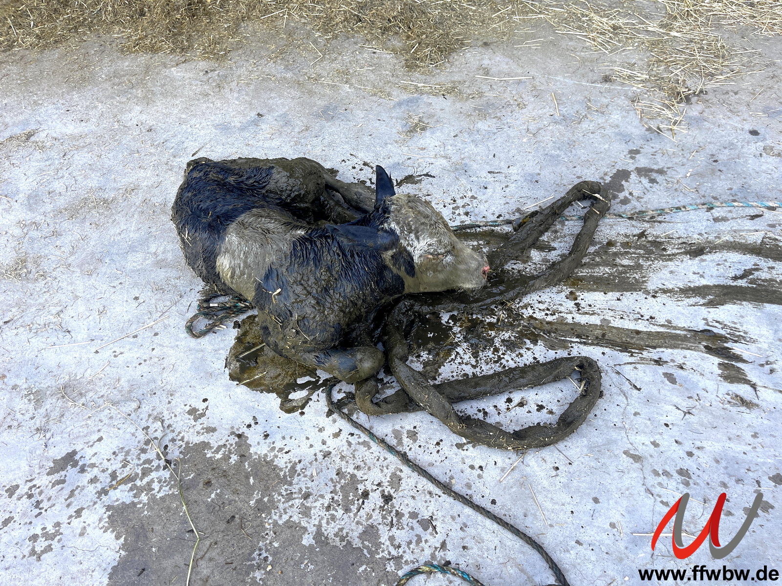 Alarmierung der Feuerwehren Schlingen und Bad Wörishofen zu einer Großtierrettung in der Nähe von Schlingen. Auf einem landwirtschaftlichen Anwesen stürzte ein Kalb in eine Güllegrube.