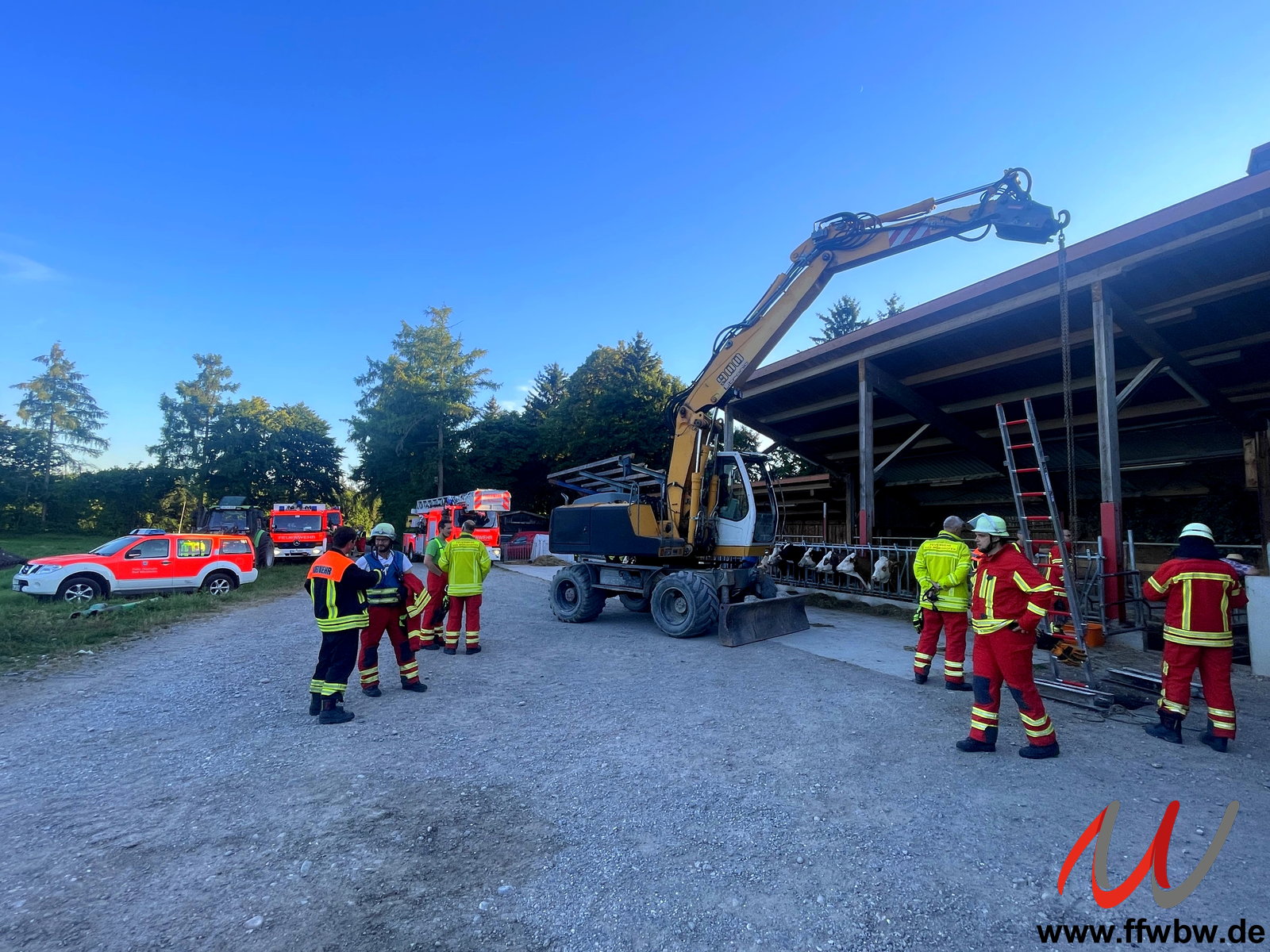 Ein Bagger hob das Kalb vorsichtig aus der Öffnung heraus. Augenscheinlich war das Tier nach der Rettung zwar etwas mitgenommen, zog sich aber sonst keine nennenswerten Verletzungen zu.