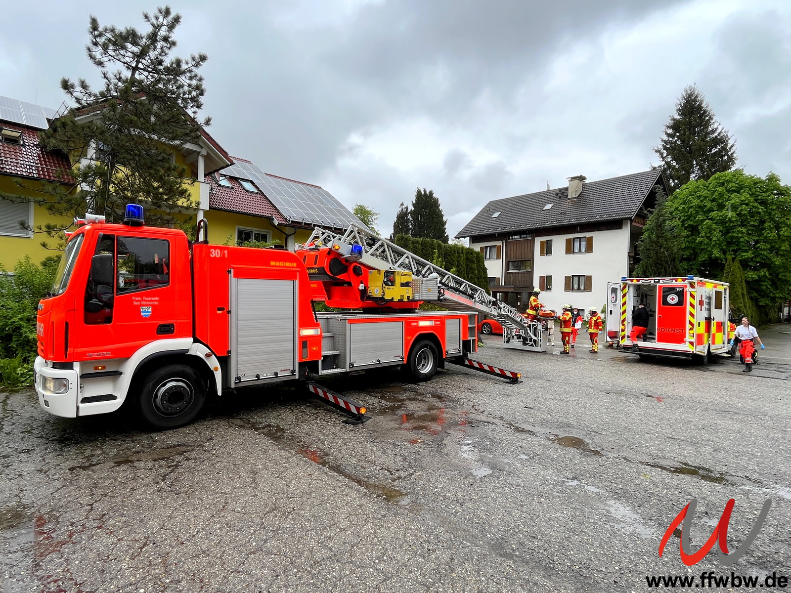 Alarmierung der Feuerwehr Bad Wörishofen zur Unterstützung des Rettungsdienstes in die Mindelheimer Straße. Ein Patient musste liegend aus dem ersten Obergeschoss nach unten befördert werden. Ein Transport des Patienten über das Treppenhaus des Wohngebäudes war aufgrund der Platzverhältnisse nicht möglich. Nach der medizinischen Versorgung durch den Rettungsdienst und Notarzt wurde der Patient auf die Krankentragenlagerung der Drehleiter geschoben und schonend nach unten gefahren. Im Anschluss daran wurde der Patient vom Rettungsdienst in eine Klinik eingeliefert.