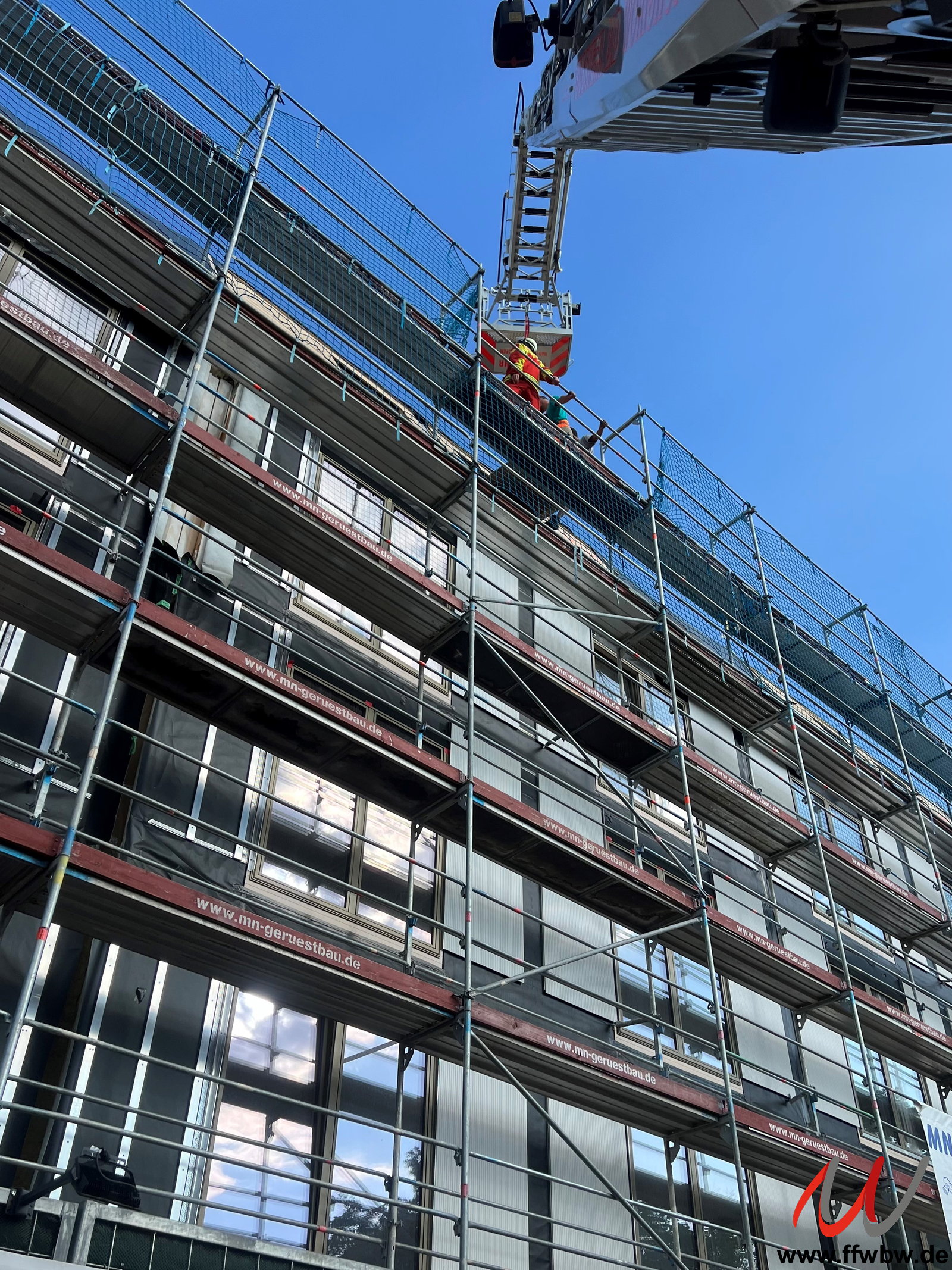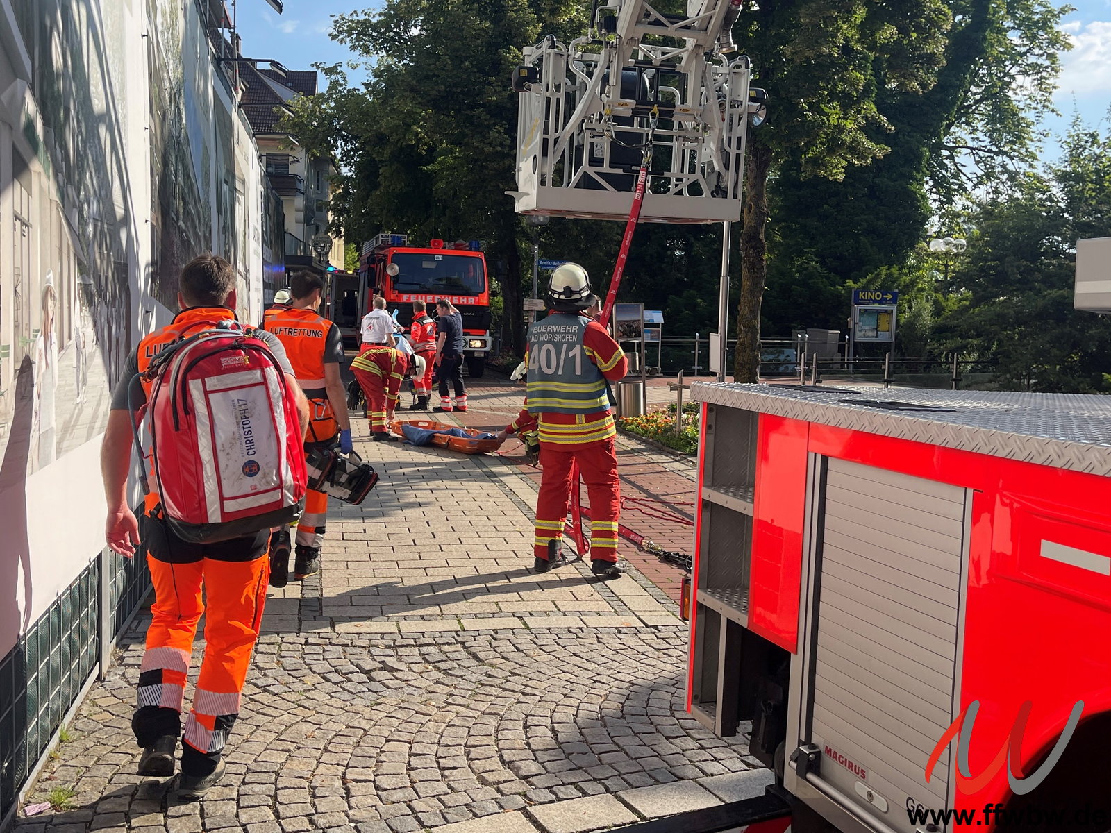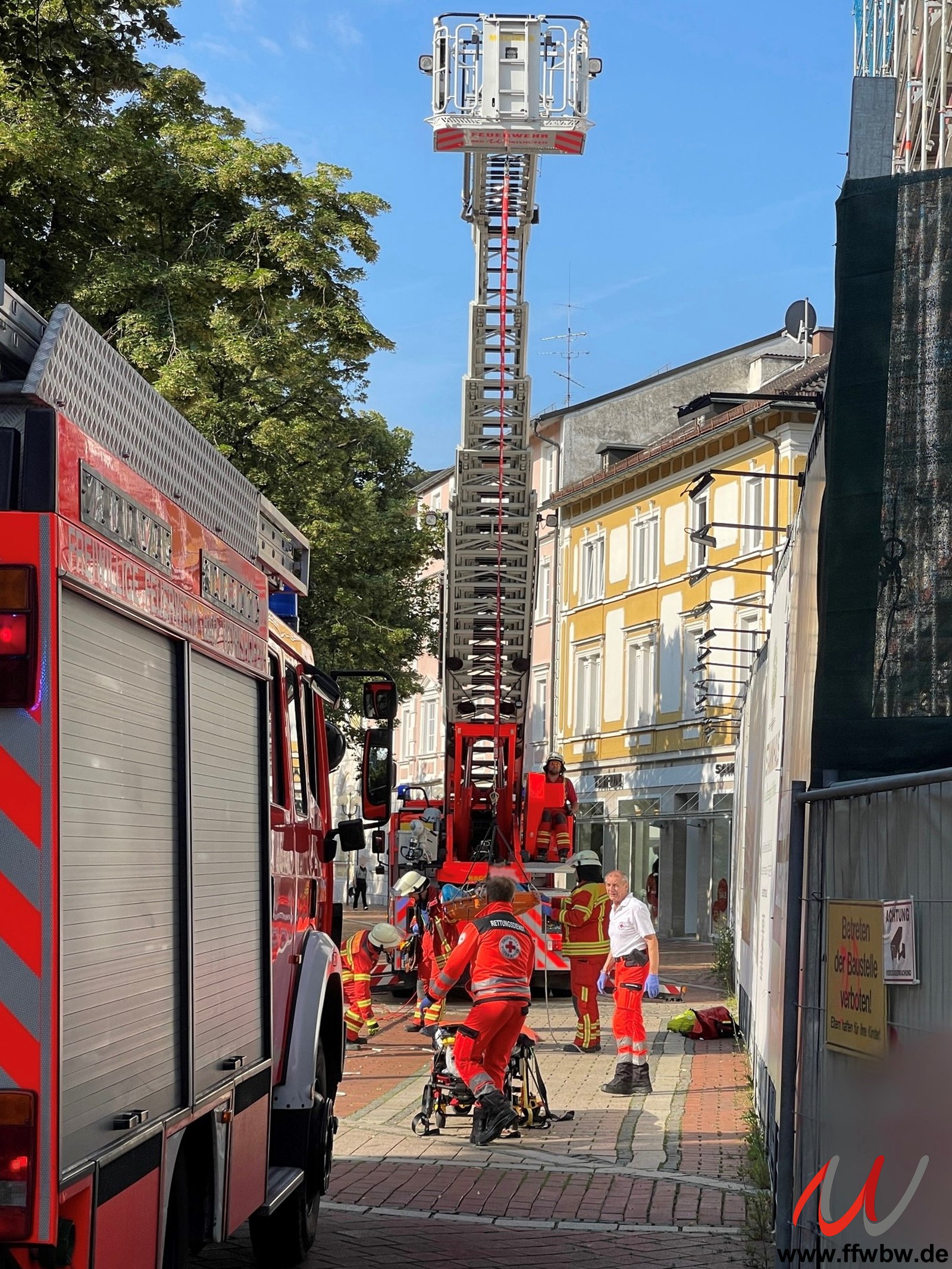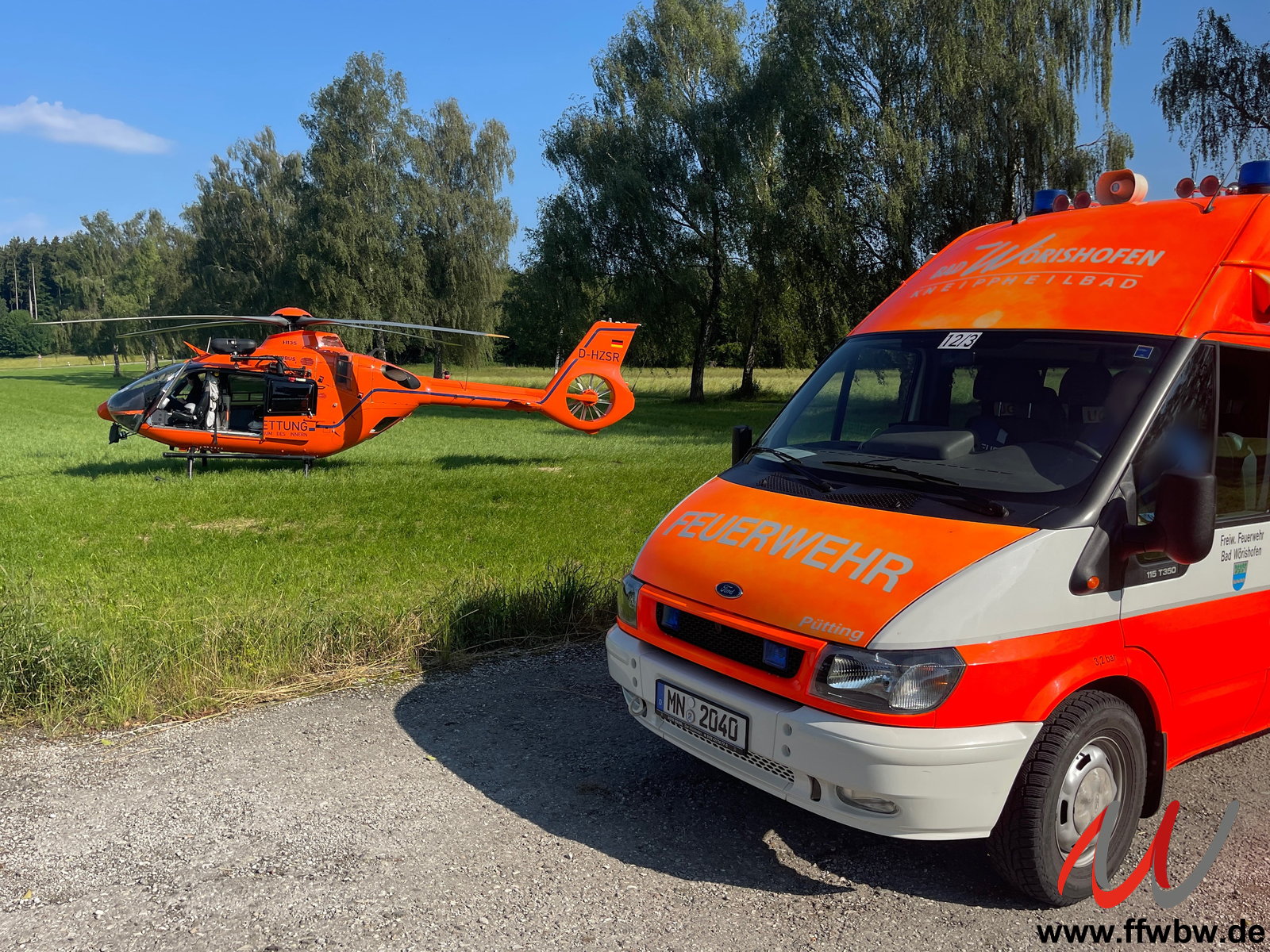 Am Freitagvormittag wurde die Feuerwehr Bad Wörishofen zu einem Arbeitsunfall auf einer Baustelle in der Kneippstraße alarmiert. Im vierten Obergeschoss der Baustelle zog sich ein Arbeiter schwere Verletzungen zu. Die medizinische Erstversorgung erfolgte durch den bereits anwesenden Rettungsdienst und Notarzt. Der Transport der schwer verletzten Person war nur liegend möglich. Eine Übernahme des Patienten auf die Krankentragenlagerung am Rettungskorb der Drehleiter war aufgrund der baulichen Situation und der Einrüstung des Gebäudes nicht möglich. Aus diesem Grund musste das Verbindungsmittel Tragenrettung eingesetzt werden. Nach Abschluss der primären Erstversorgung wurde der Patient in die Schleifkorbtrage gelagert. Aus einem Dachfenster heraus erfolgte dann der hängende Transport des Patienten nach unten. Nach weiterer Versorgung im Rettungswagen wurde der Patient im Anschluss daran mit dem Rettungshubschrauber (Christoph 17), der am Ortsrand von Bad Wörishofen gelandet ist, in eine Unfallklinik geflogen.