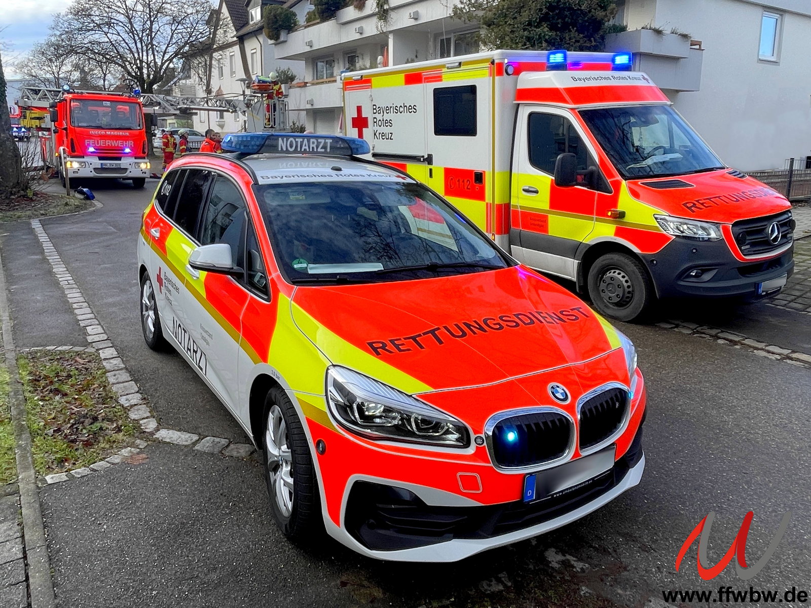 Alarmierung zu einer Personenrettung mit der Drehleiter in die Bgm.-Singer-Straße. Ein Patient musste aufgrund seines Krankheitsbildes liegend aus dem zweiten Obergeschoss nach unten befördert werden. Ein liegender Transport durch das Treppenhaus war aufgrund der baulichen Situation nicht möglich.