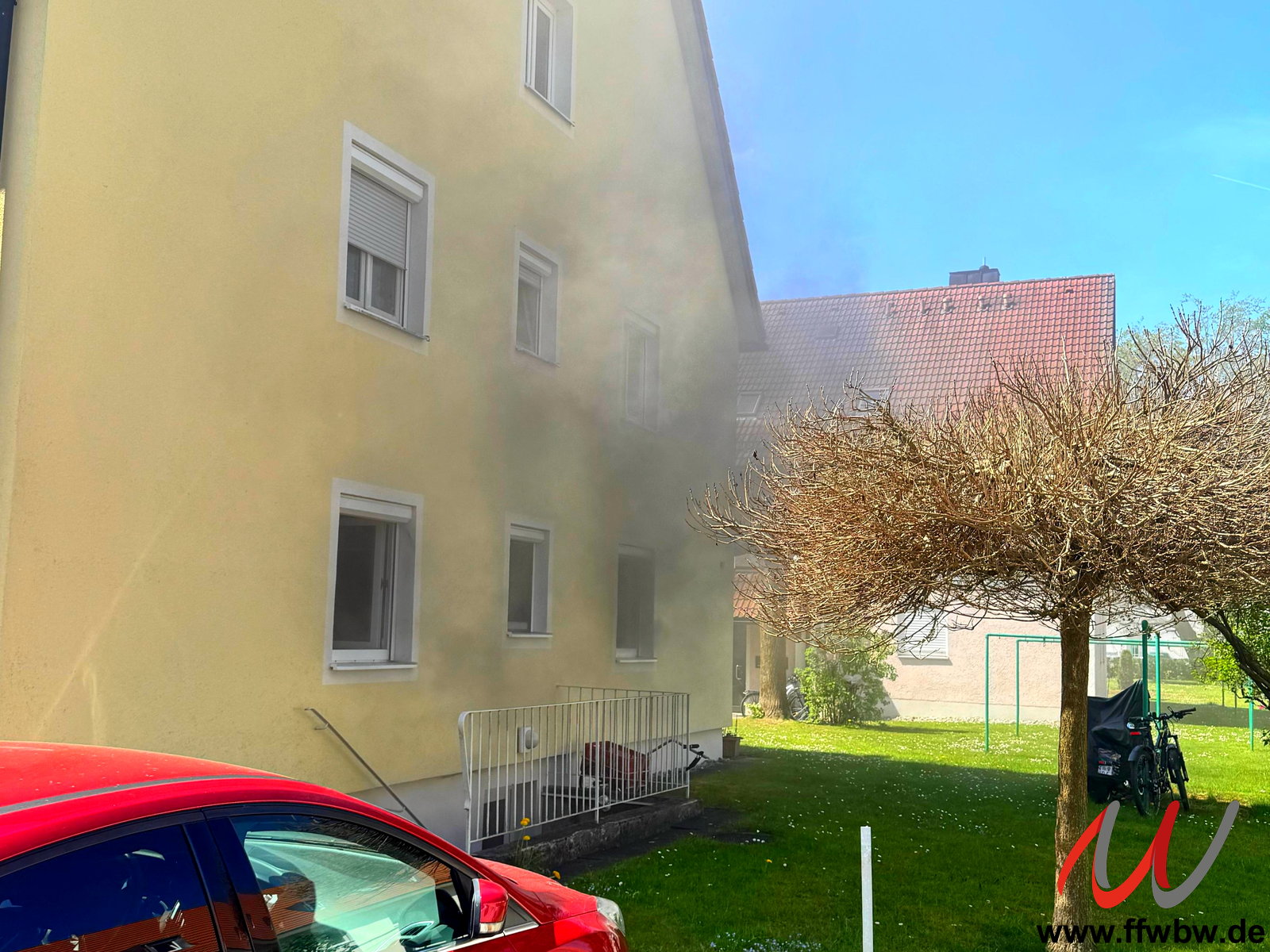Alarmierung der Feuerwehr Bad Wörishofen zu einer Rauchentwicklung im Gebäude in den Wertachweg. Ursache für die Rauchentwicklung in einer Wohnung eines Mehrparteienhauses war ein Elektrogerät, welches Feuer fing. Dadurch geriet auch die angrenzende Kücheneinrichtung in Brand. Ein Atemschutztrupp ging mit einem C-Rohr zur Brandbekämpfung in die Wohnung vor. Die Bewohner der Wohnung waren zum Brandzeitpunkt nicht zu Hause. Die Wohnung wurde im Anschluss mit einem Druckbelüfter noch ventiliert.