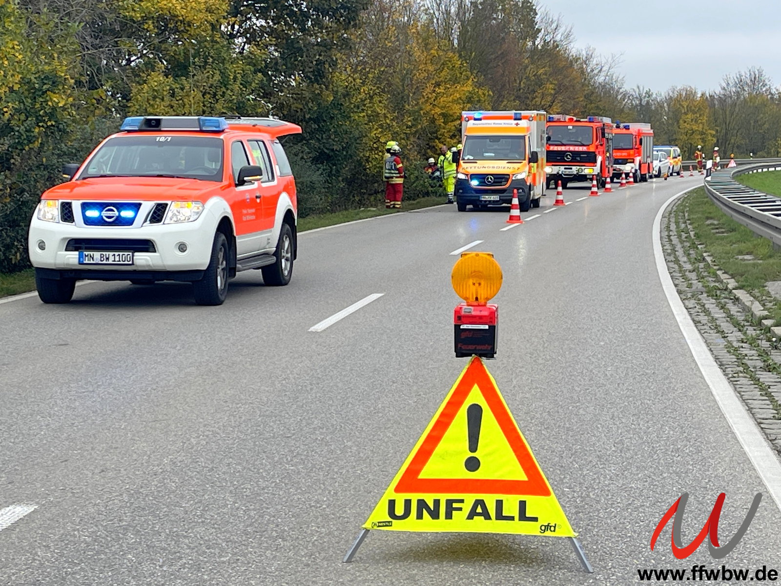 Alarmierung der Feuerwehr Bad Wörishofen zu einem Verkehrsunfall auf die Staatsstraße 2015 zwischen der Anschlussstelle Bad Wörishofen Süd und Schlingen. Die verletzte Person wurde durch den Rettungsdienst und Notarzt versorgt und anschließend in eine Klinik gefahren. Der Verkehr wurde während der Unfallaufnahme der Polizei einspurig an der Unfallstelle vorbeigeleitet.