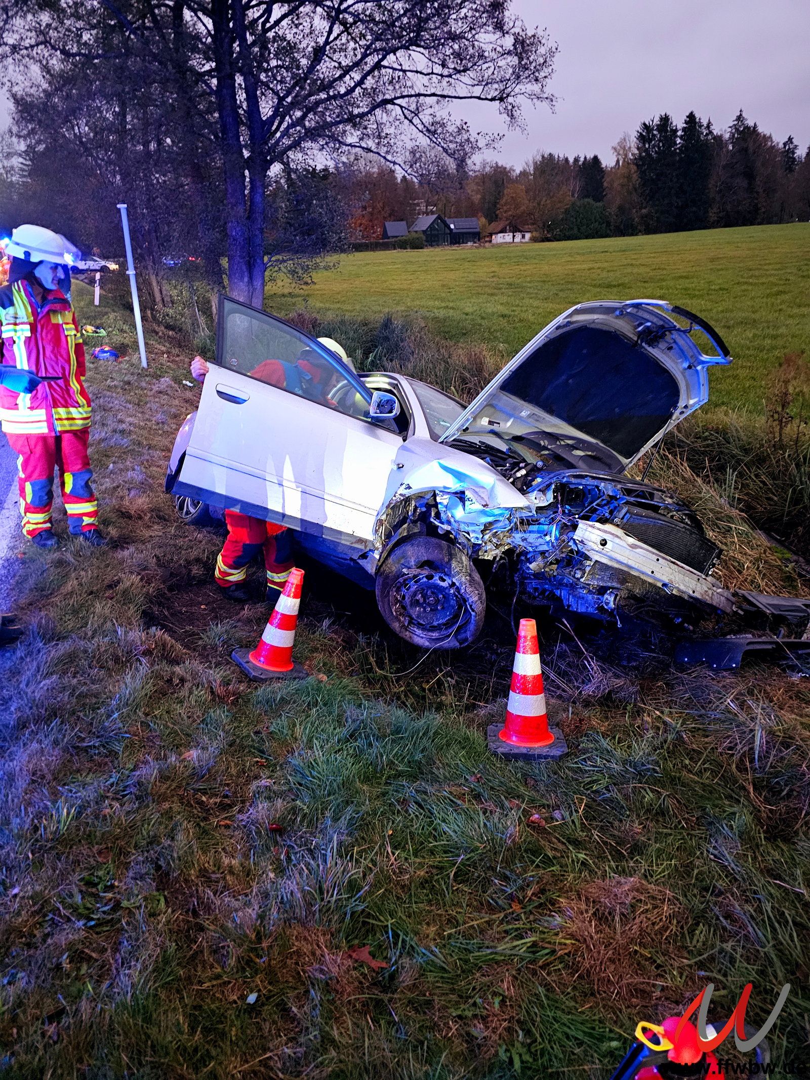 Aus noch ungeklärter Ursache kam ein mit vier Personen besetzter PKW nach rechts von der Fahrbahn ab und kam in einem Graben zum Liegen.
