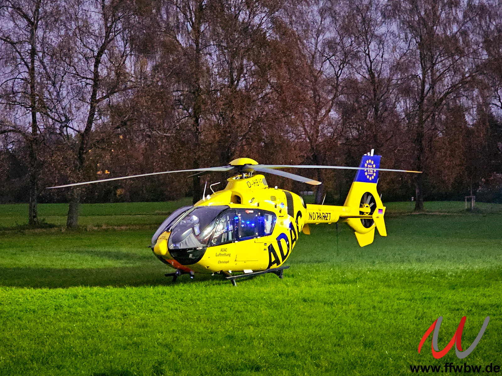 Ein Landeplatz für den Rettungshubschrauber wurde ausgeleuchtet.