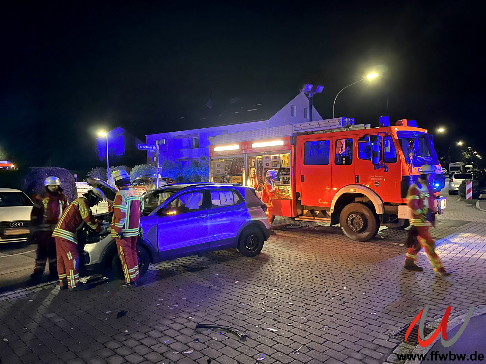Alarmierung zu einem ausgelösten eCall-Alarm im Kreuzungsbereich Irsinger und Kemptener Straße. Betreuung einer verletzten Person bis zum Eintreffen des Rettungsdienstes. Ausleuchten der Einsatzstelle für die Polizei.