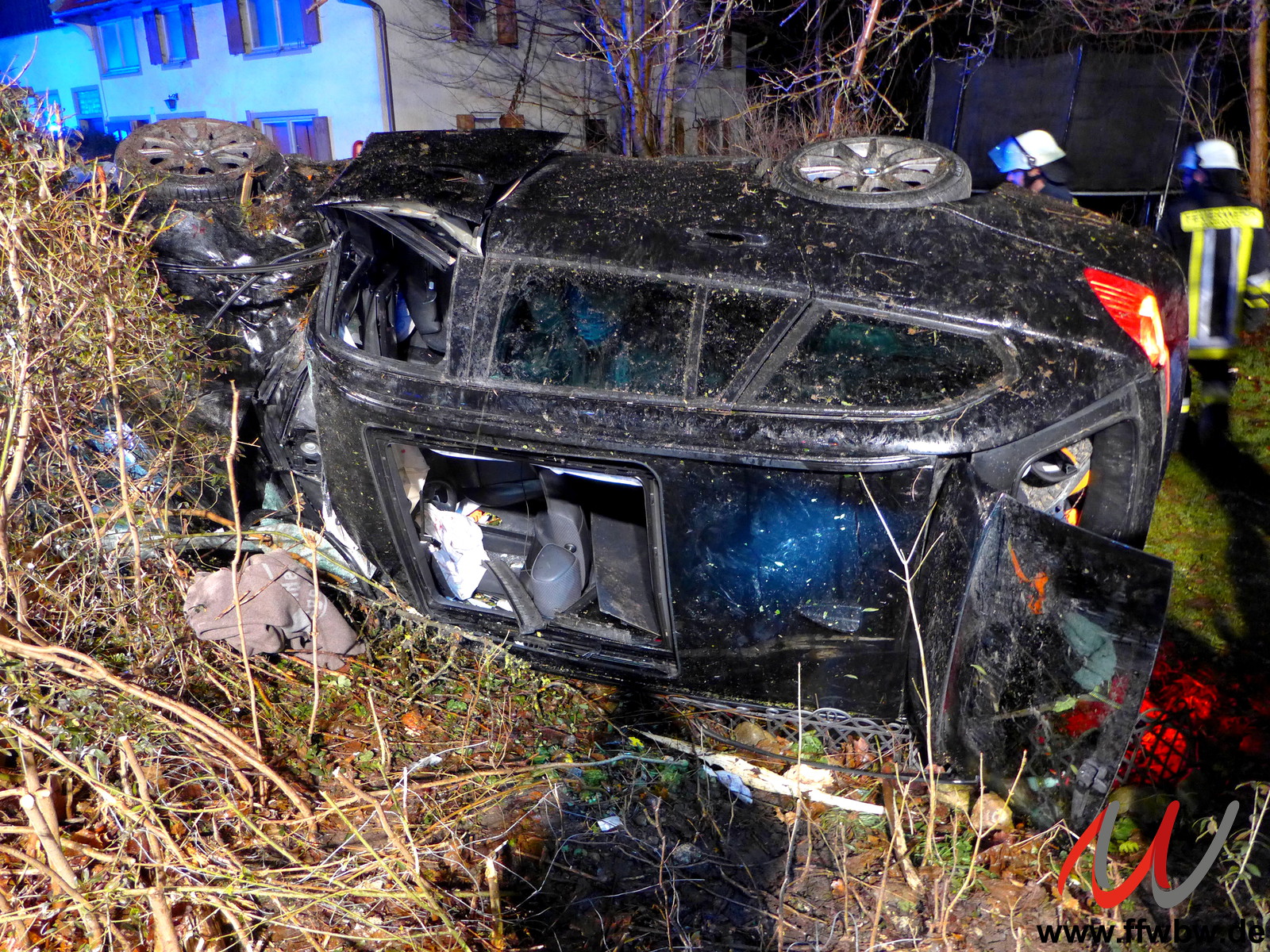 Ein mit drei Personen besetzter PKW kam aus bislang unbekannter Ursache von der Fahrbahn ab. Eine Person konnte sich selber aus dem Fahrzeug befreien, zwei Personen waren eingeschlossen und mussten durch die Feuerwehr befreit werden.